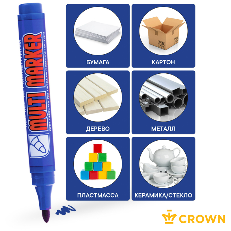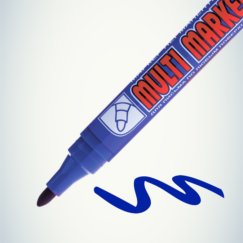 Маркер перманентный Multi Marker 3мм, синий, пулевидный Crown