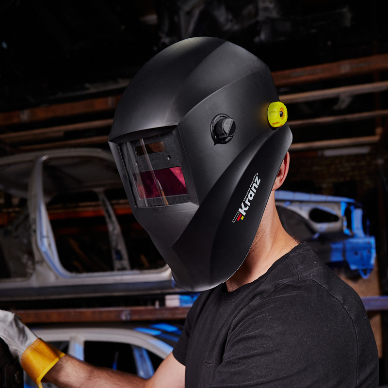 Маска сварщика с автоматическим светофильтром «Хамелеон» АСФ 400 KRANZ – это универсальная маска с автоматическим светофильтром, с возможностью регулировки степени затемнения. Предназначена для защиты головы, горла и органов зрения сварщика при проведении работ от ИК/УФ-излучений, искр и брызг металла. Затемнение в маске происходит автоматически до степени 9-13 DIN. В светлом состоянии маска 4 DIN. Есть возможность отключения автоматического затемнения для использования в режиме шлифовки/резки.