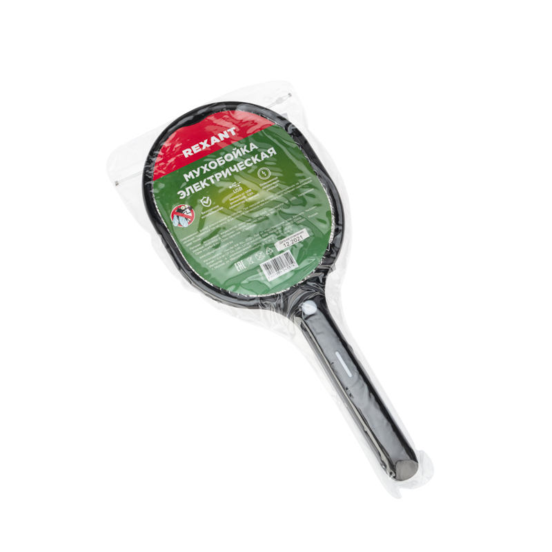 Электрическая мухобойка REXANT размером 20,5х2,8х49 см выполнена в виде ракетки для бадминтона. При нажатии кнопки, расположенной на рукоятке, во внутренней сетке возникает малый разряд тока (1000 В). В результате насекомое при контакте с сеткой получает смертельный удар. Такой способ уничтожения комаров не оставляет следов на стенах и потолке. Наружные сетки являются защитными и на них ток не поступает.