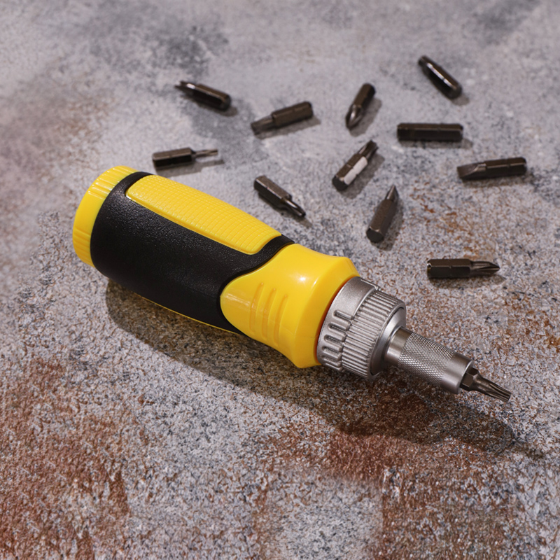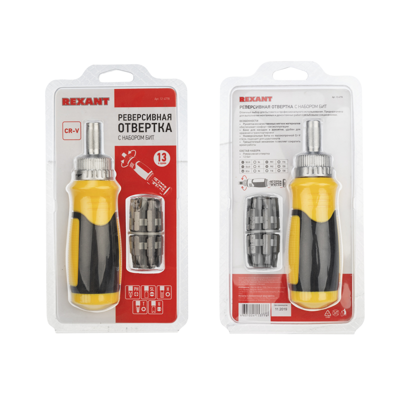 Набор, состоящий из бит и реверсивной отвертки, применяется для монтажа и демонтажа винтов, шурупов, саморезов и других крепежных изделий. Намагниченные насадки выполнены из качественной хромованадиевой стали. Двухкомпонентная прорезиненная рукоятка не скользит в ладони и обеспечивает дополнительный комфорт при работе.