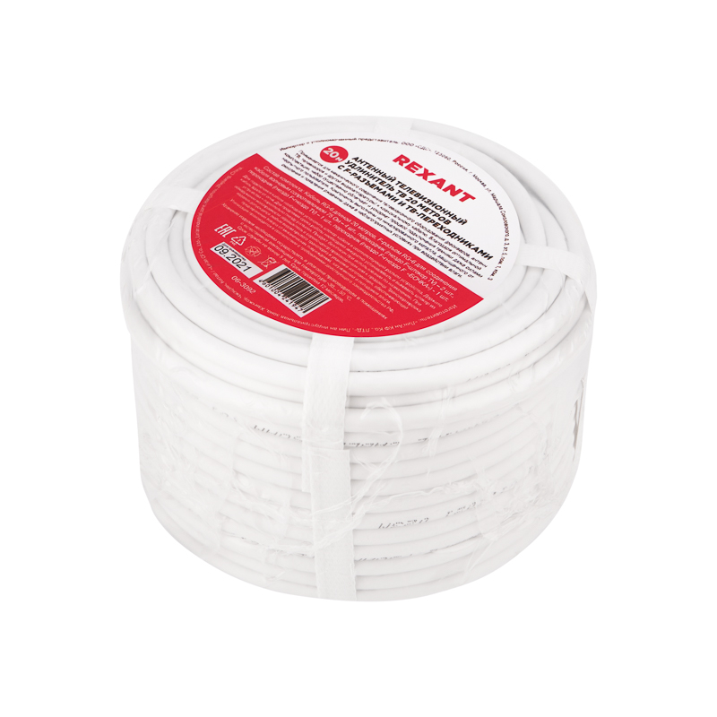 В состав комплекта входят: кабель RG-6 CCS 75Ом длиной 20 метров; F-разъем RG-6 – 4 шт; переходник (гнездо F - штекер TV) – 2 шт; переходник (гнездо F - гнездо TV) – 1 шт; переходник (гнездо F - гнездо F Бочка) – 1 шт.
