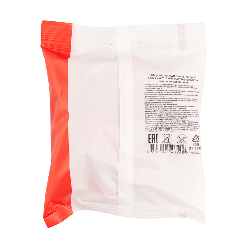 Размеры проводов в наборе: 0,50х5 м/0,75х5 м/1х3 м/1,50х3 м/2,50х2 м.