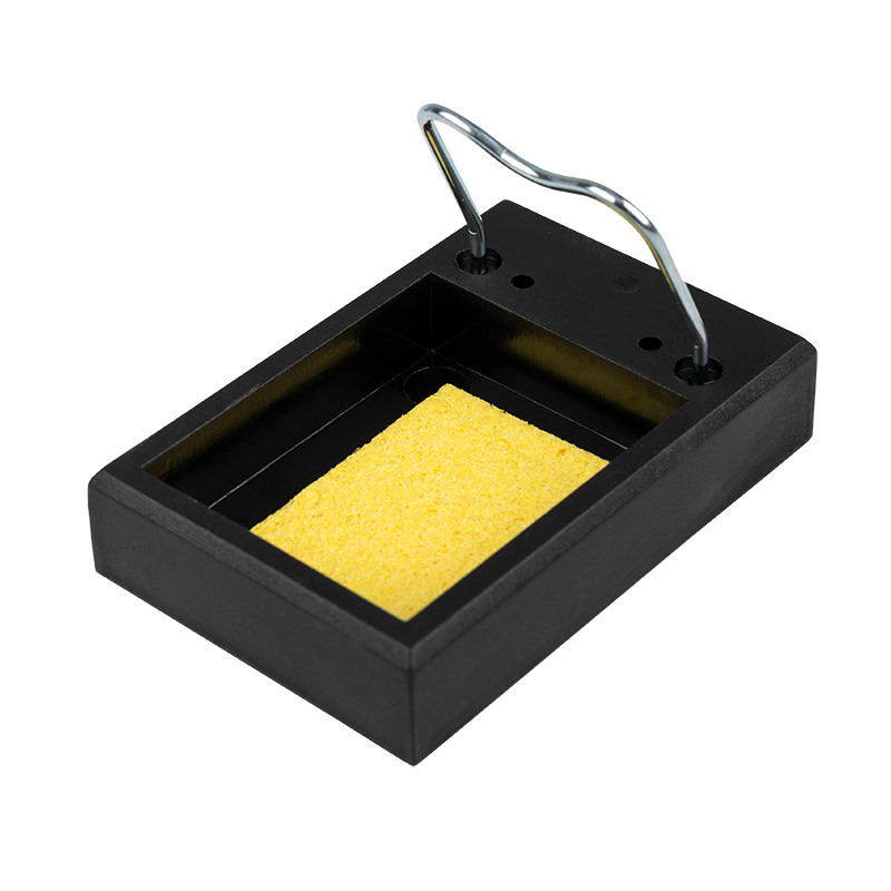 Подставка под паяльник с ложементом под губку для удаления припоя, делает работу с инструментом более удобной, безопасной и продуктивной. Она позволяет уберечь паяльное жало от соприкосновения с другими предметами, в том числе исключая случайные ожоги.