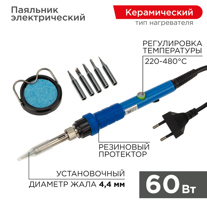Паяльник с керамическим нагревателем и регулятором температуры REXANT предназначен для ручного монтажа радиоэлементов. Его используют как в домашних условиях, так и в профессиональных мастерских. Паяльник выполнен с керамическим нагревательным элементом и долговечным жалом. В корпус встроен аналоговый регулятор температуры в диапазоне 220...480 °C. Широкий диапазон рабочих температур позволяет применять такой паяльник для самых разных задач. Острое тонкое жало идеально подойдет для точных работ с электронными компонентами.