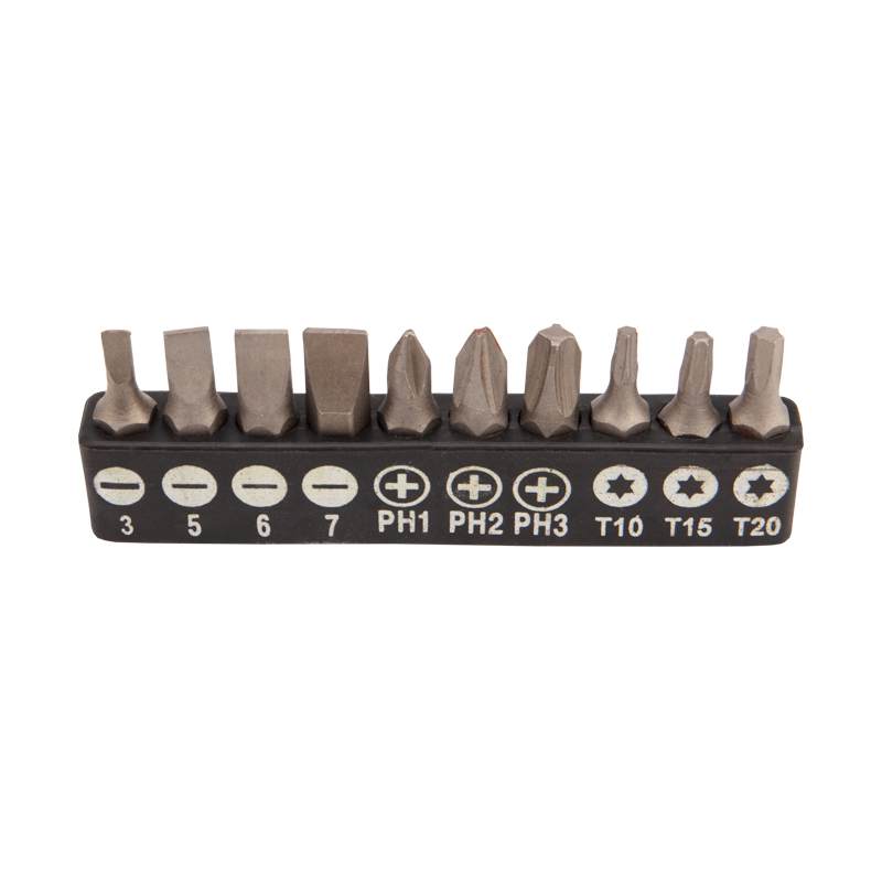 В комплекте поставляются биты: SL3, SL5, SL6, SL7, T10, T15, T20, PH1, PH2, PH3.
