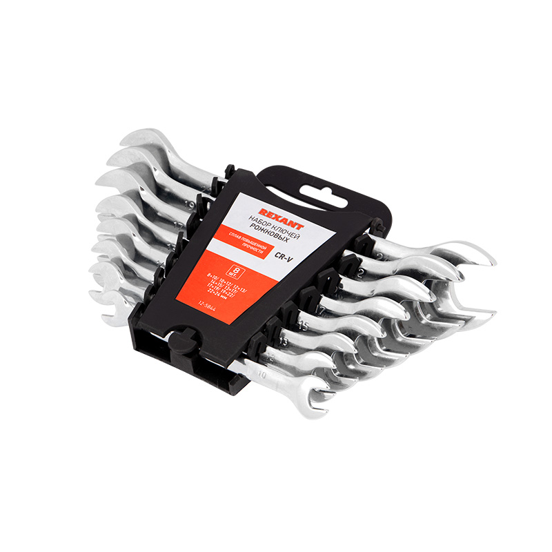 Набор рожковых гаечных ключей REXANT предназначен для монтажа и демонтажа резьбовых соединений: болтов, гаек, муфт и т. д. Хромованадиевый сплав, из которого изготовлены ключи, обладает такими свойствами, как прочность, жесткость, устойчивость к износу.