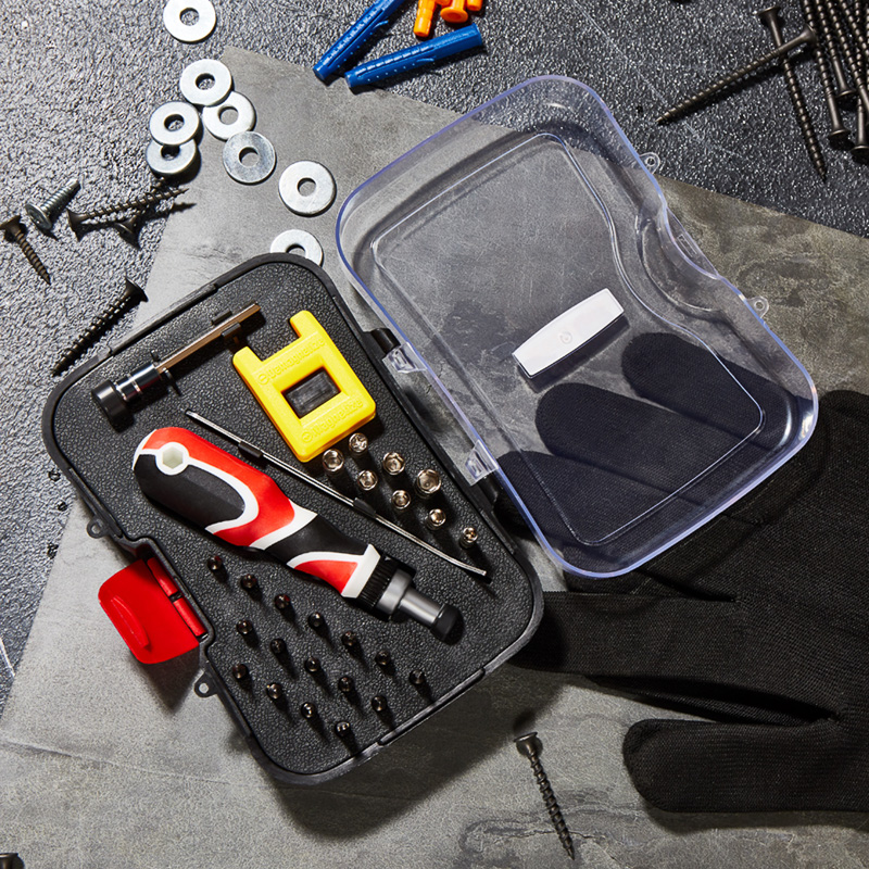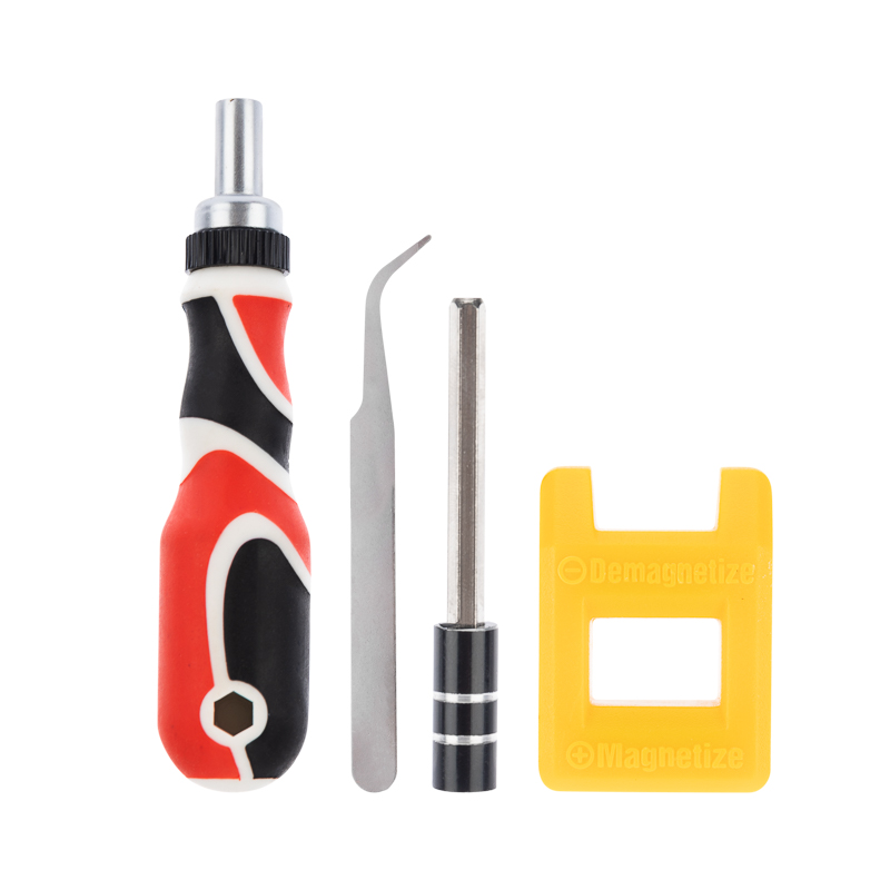 Набор укомплектован дополнительным магнитом для намагничивания бит и насадок. Пинцет с изогнутыми острыми губками помогает работать с мелкими деталями. Набор поставляется в пластиковом кейсе для удобного хранения и транспортировки.