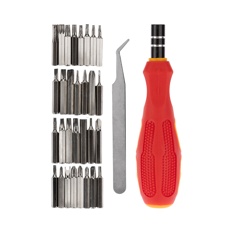Биты набора выполнены из хромованадиевой стали. Эргономичная двухкомпонентная рукоятка отвертки делает работу с инструментом легкой и удобной. Магнитный держатель обеспечивает быструю замену и надежную фиксацию насадок.