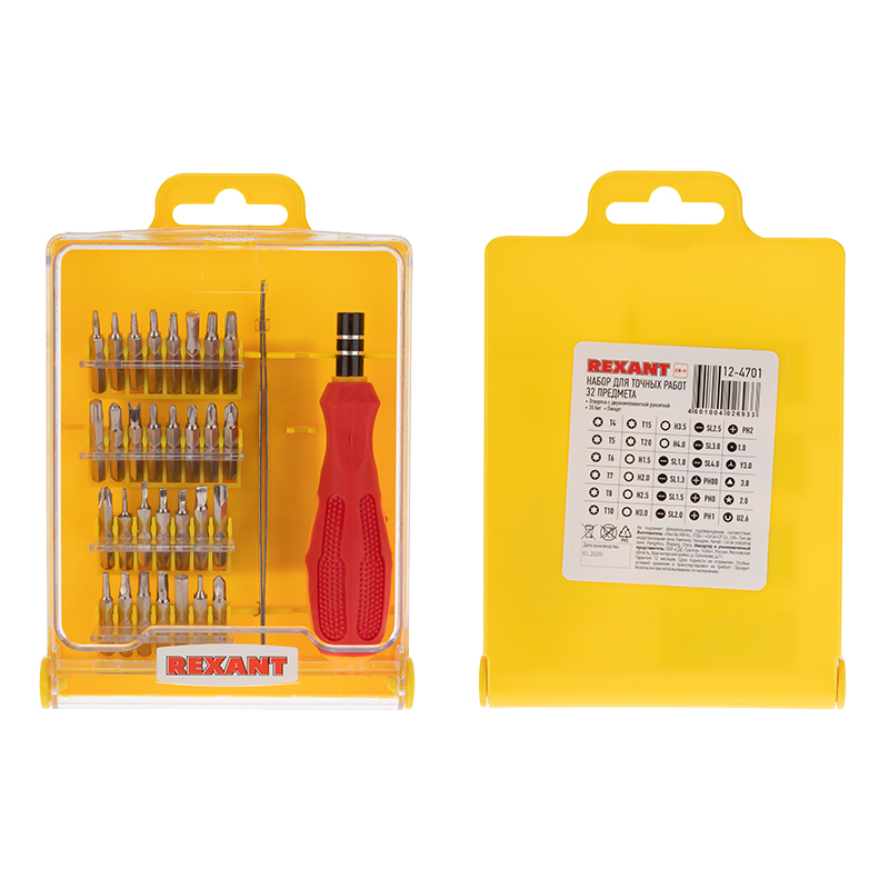 Набор отверток для точечных работ арт.12-4701 REXANT 32 предмета предназначен для выполнения прецизионных работ в электронике и электромеханике.