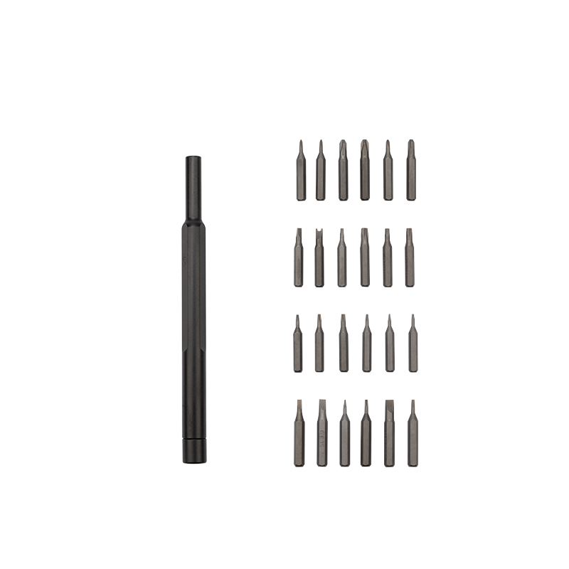 В наборе отвертка с 24 битами: 1.0, 1.5, 2.0, 2.5, 3.0, PH0, PH1, PH00, PH000, PZ0, PZ1, PZ00, T4, T5, T6, T7, T8, T9, T10, T15, H1.5, H2.0, P2, P5.