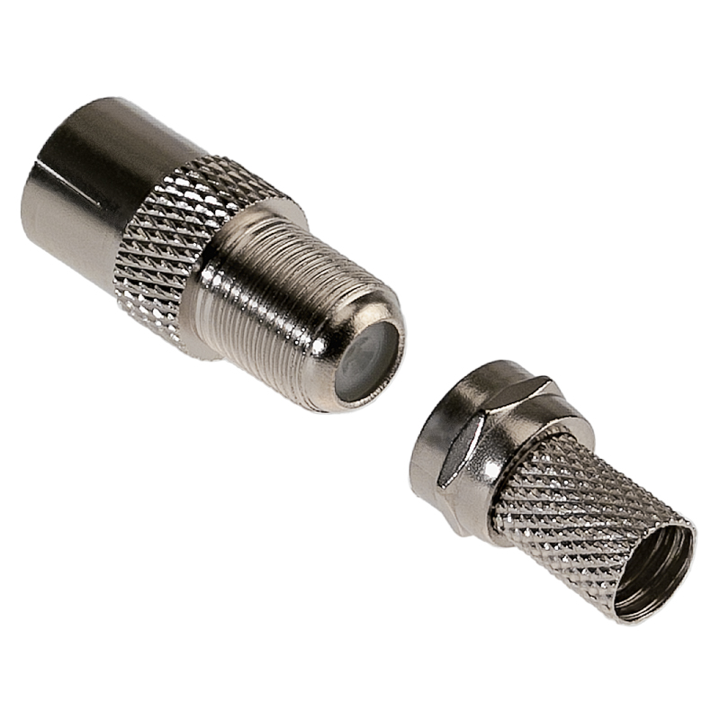 Набор антенных разъемов №6 предназначен для оконцевания кабелей. В наборе 1 переходник (гнездо F – гнездо TV) и 1 F-разъем RG-6, L=17,8 мм.