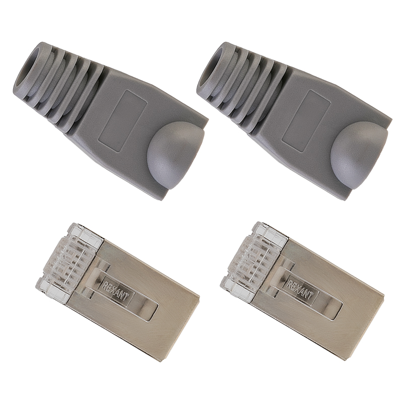 Набор сетевых разъемов №5 предназначен для оконцевания кабелей. В наборе 2 сетевых разъема FTP и 2 изолирующих колпачка.