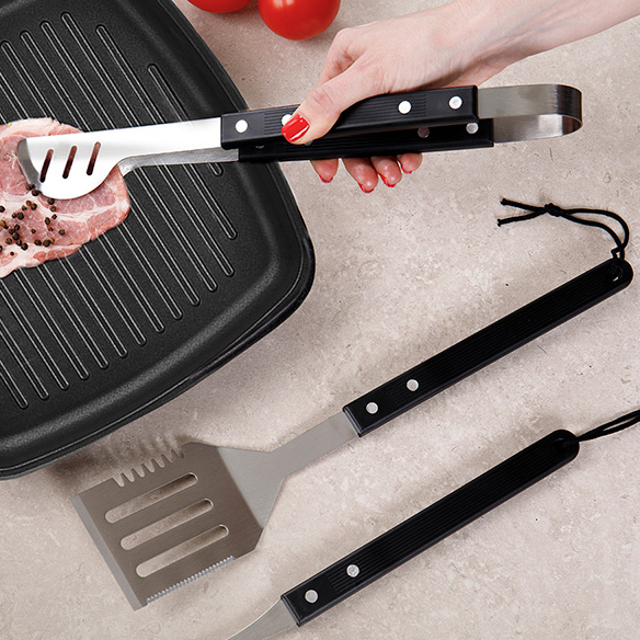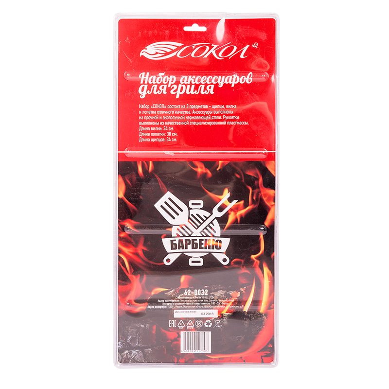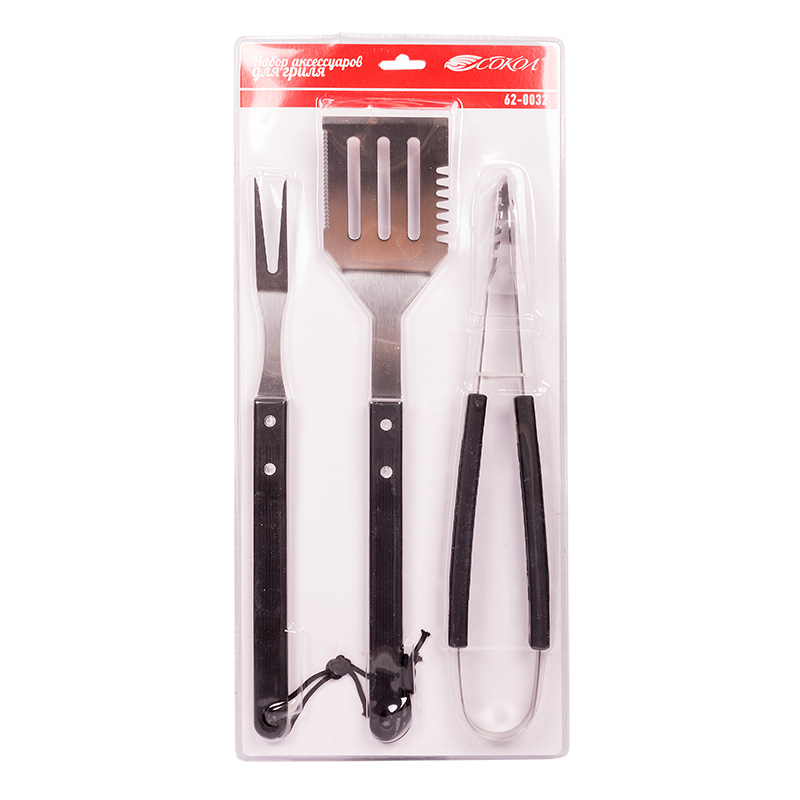 Набор для гриля СОКОЛ состоит из 3-х предметов: щипцов, вилки и лопатки. Длина аксессуаров позволяет перемещать продукты на решетке на безопасном расстоянии от жара, предотвращая ожоги и травмы.