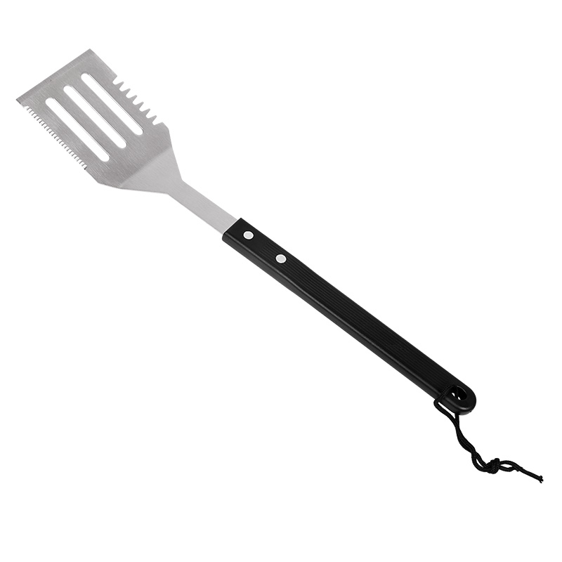 Многофункциональной лопаткой можно переворачивать еду, открывать бутылки, а с помощью зубчиков на одной из сторон – отбивать стейк. Рабочая часть лопатки с отверстиями выполняет функцию шумовки – через отверстия происходит отток лишней жидкости (бульона, соуса или масла).