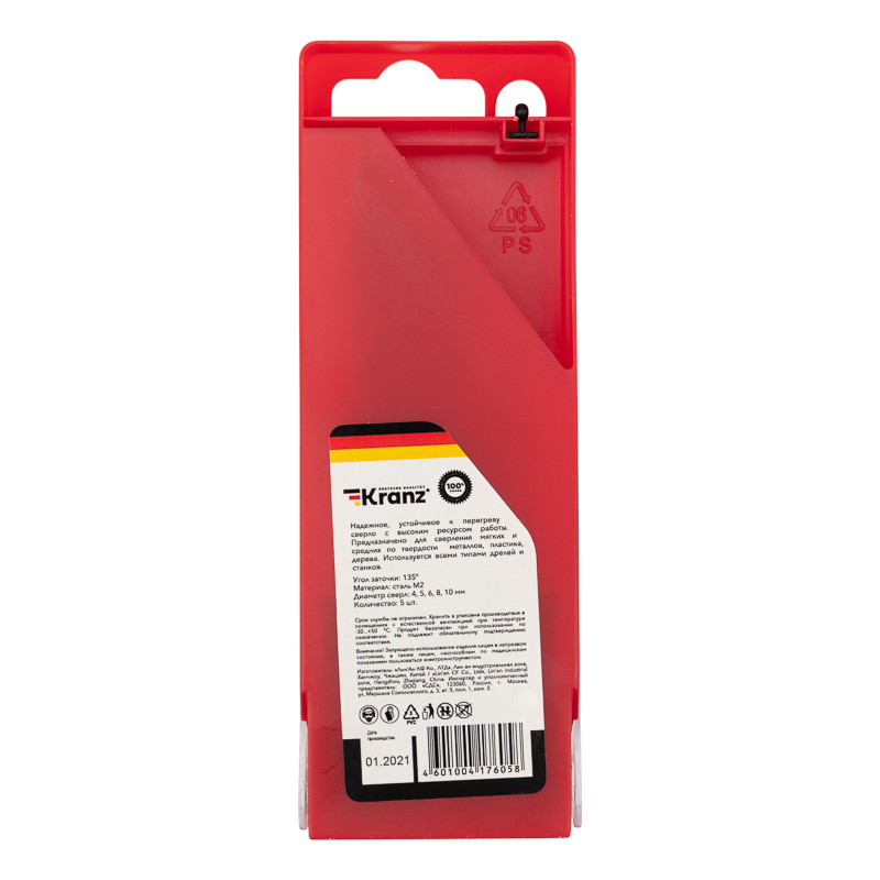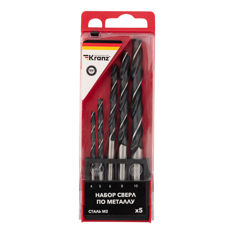 Набор из 5 сверл по металлу KRANZ предназначен для сверления отверстий в таких материалах, как сталь, дерево и пластик.