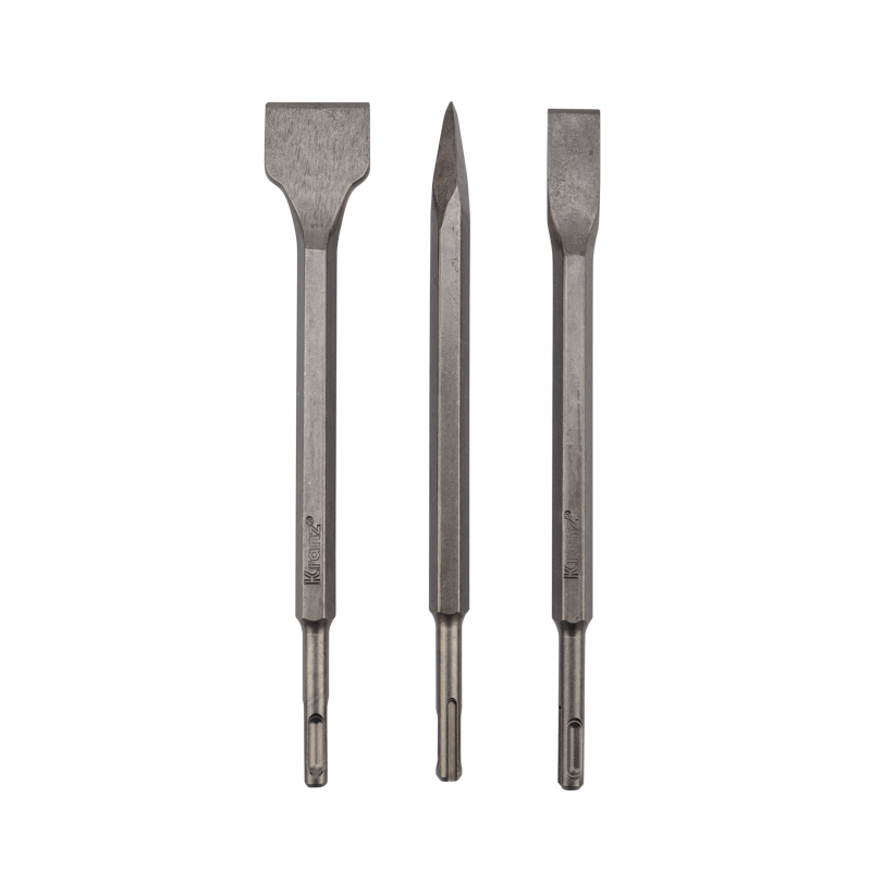 Набор из 3 зубил предназначен для выполнения широкого спектра долбежных и демонтажных работ по камню, бетону и кирпичу.