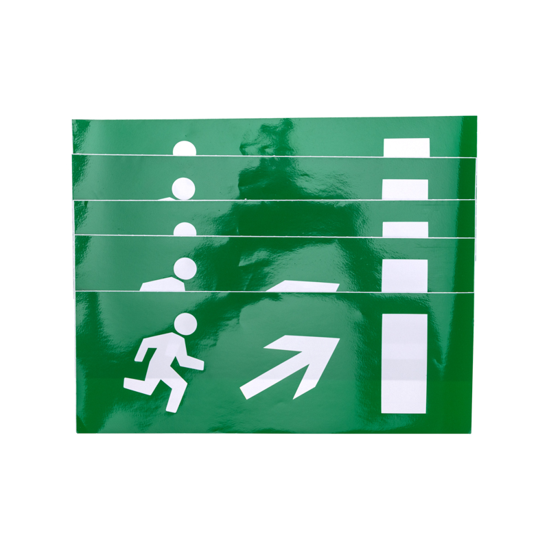 Наклейка для прозрачного аварийного светильника Арт 74-1310, размером 120*320мм. Наклейка выполнена из литой цветной пленки, которая имеет долгий срок службы и защиту от выцветания.