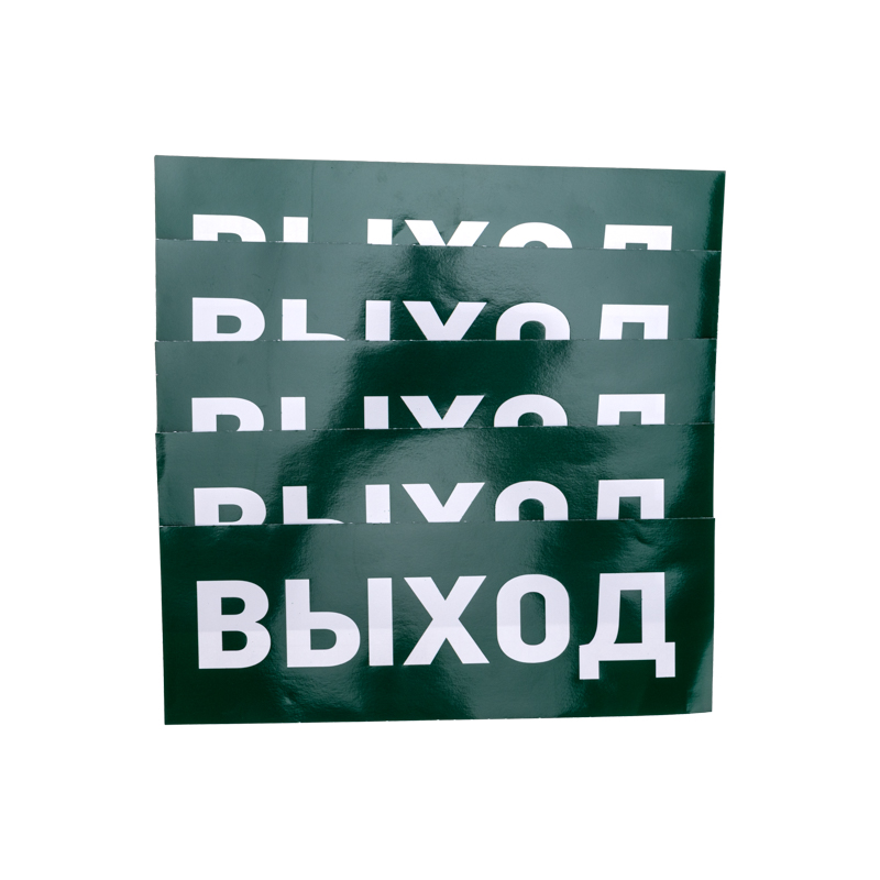 Наклейка для прозрачного аварийного светильника Арт 74-1310, размером 120*320мм. Наклейка выполнена из литой цветной пленки, которая имеет долгий срок службы и защиту от выцветания.