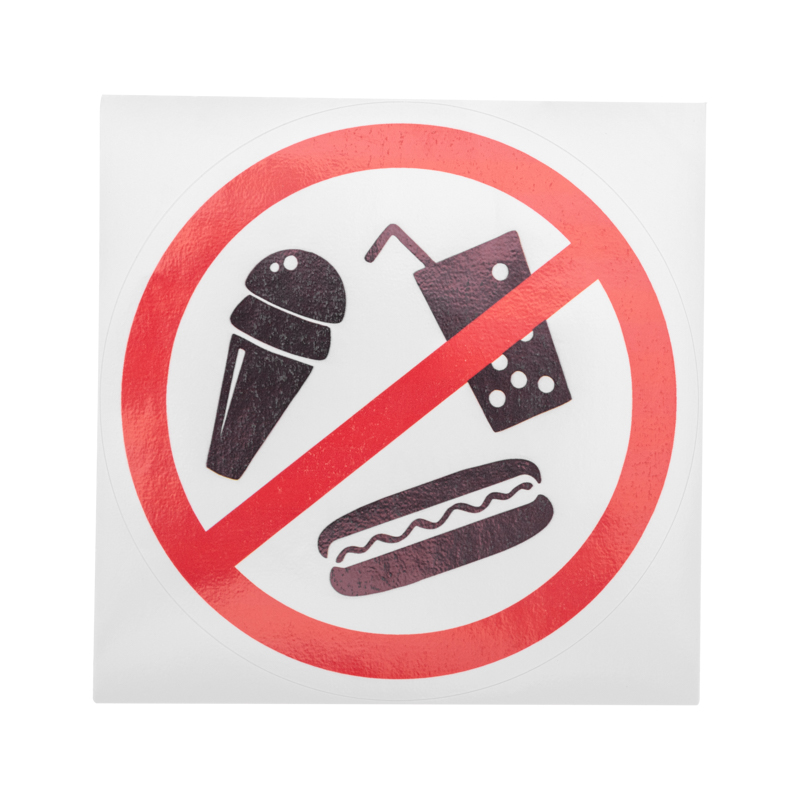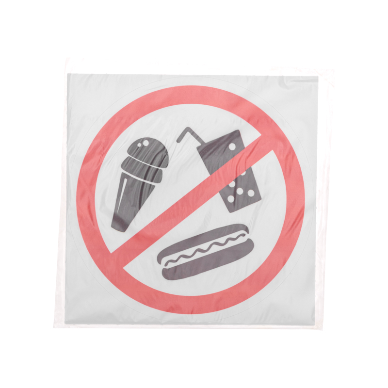Наклейка «С продуктами питания вход запрещен» предназначена для информирования о запрете нахождения с продуктами питания на определенной территории или объекте.