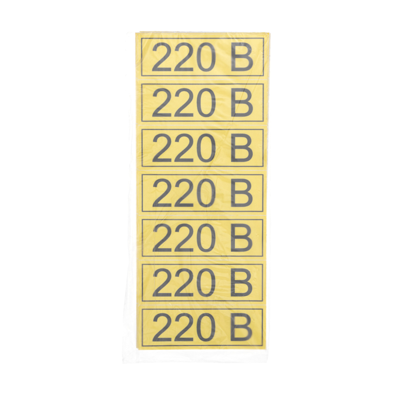 Знак электробезопасности (наклейка) «220 В» – это информационный знак, который сообщает о напряжении в электрической сети. Предназначен для размещения около розеток и выключателей.