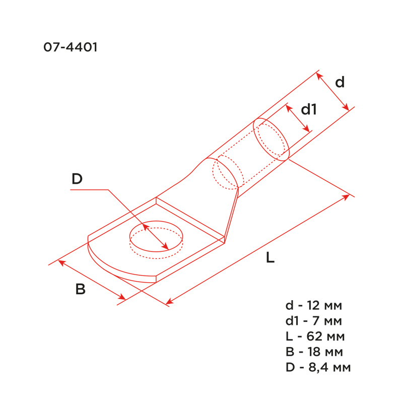 Наконечник алюминиевый ТА 25-8-7 REXANT предназначен для оконцовывания посредством опрессовки алюминиевых проводов и кабелей для последующего болтового соединения проводника с оборудованием или шиной.