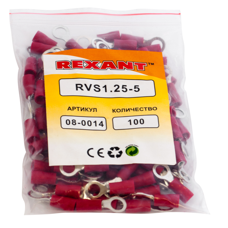 Наконечник кольцевой изолированный ø 5.3 мм 0.5-1.5 мм² (НКи 1.5-5/НКи 1,25-5) красный REXANT