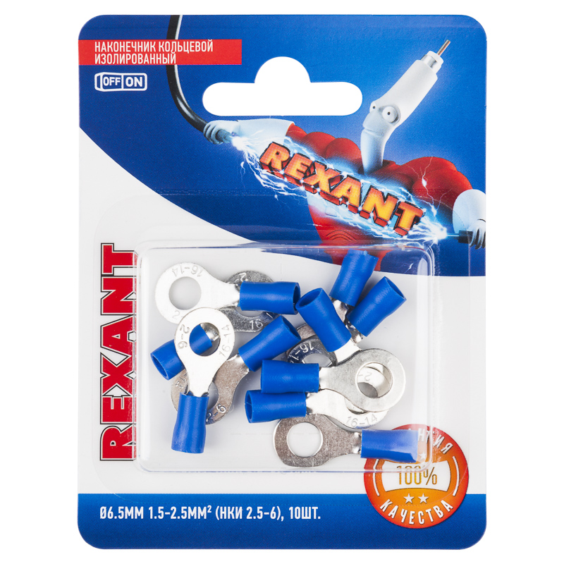 Наконечник кольцевой изолированный ø 6.5мм 1.5-2.5мм² (НКи 2.5-6/НКи2-6) синий, в упак. 10 шт. REXANT