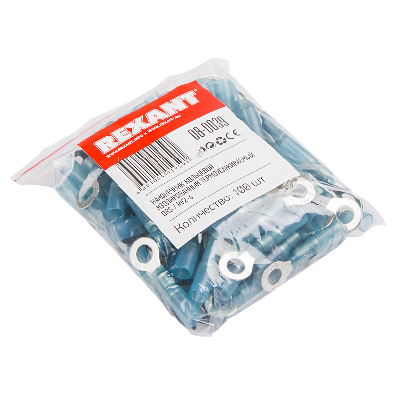 Наконечник кольцевой изолированный термоусаживаемый ø 6.5 мм 1.5-2.5 мм² (НКи-т 2.5-6/НКи-т2-6) синий REXANT