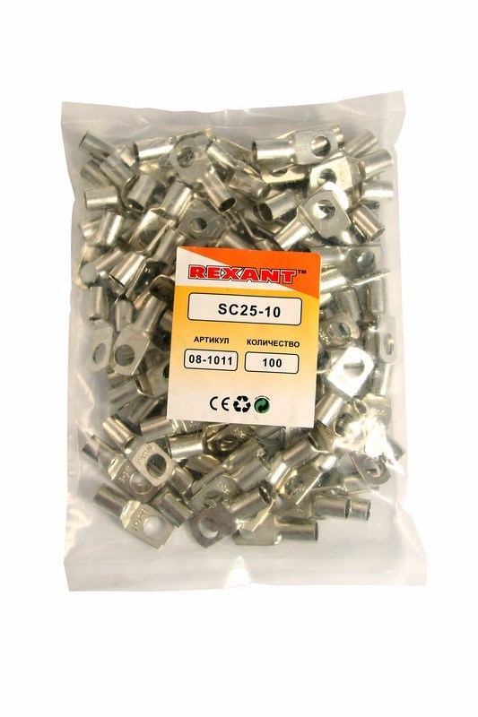 Наконечник кольцевой (НК ø 10.5 мм) 25 мм² REXANT предназначен для создания качественного подключения электрооборудования, которое осуществляется через контактное соединение на основе винтовой фиксации. Такая клемма используется для оконцовывания многожильных медных проводов при монтаже электрооборудования силовых или осветительных сетей (электрооборудования промышленных предприятий, систем отопления, горячего водоснабжения, вентиляции и кондиционирования, обогрева водостоков и дренажа, лифтов или сверхмощного бытового электрооборудования).