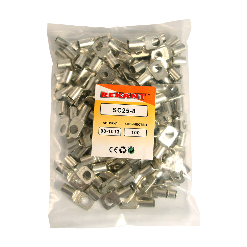 Наконечник кольцевой (НК ø 8.4 мм) 25 мм² REXANT предназначен для создания качественного подключения электрооборудования, которое осуществляется через контактное соединение на основе винтовой фиксации. Такая клемма используется для оконцовывания многожильных медных проводов при монтаже электрооборудования силовых или осветительных сетей (электрооборудования промышленных предприятий, систем отопления, горячего водоснабжения, вентиляции и кондиционирования, обогрева водостоков и дренажа, лифтов или сверхмощного бытового электрооборудования).