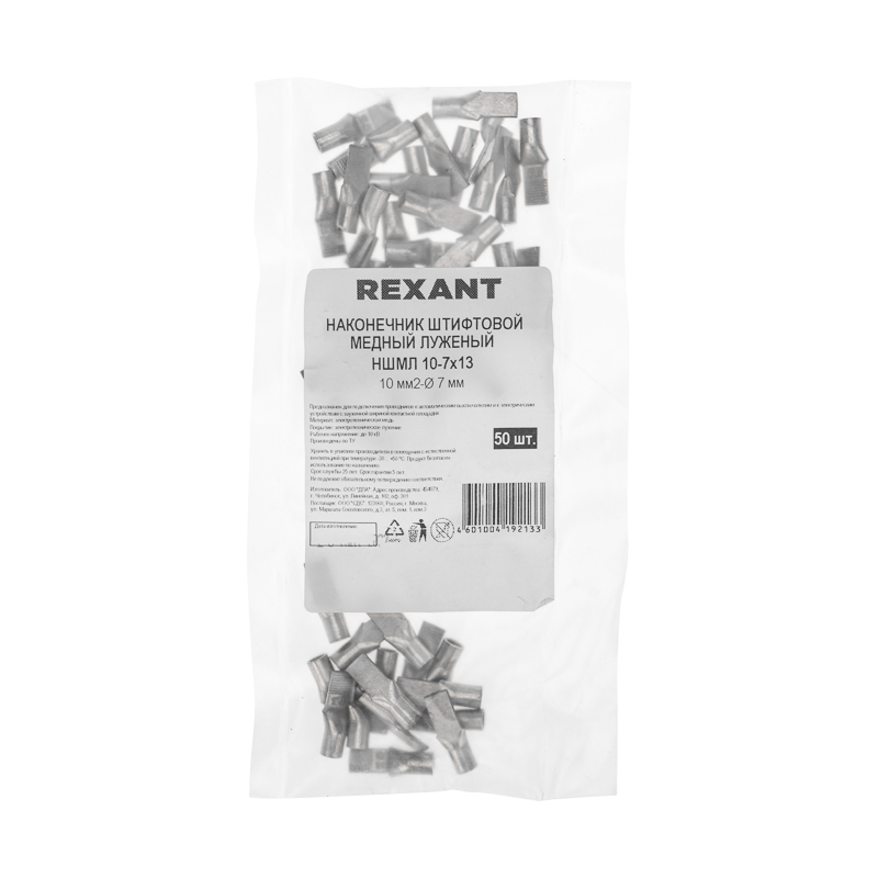 Наконечник штифтовой НШМЛ 10-7х13 (10 мм² - Ø 7 мм) REXANT используется для подключения проводников к автоматическим выключателям и к электрическим устройствам с зауженной шириной контактной площадки.