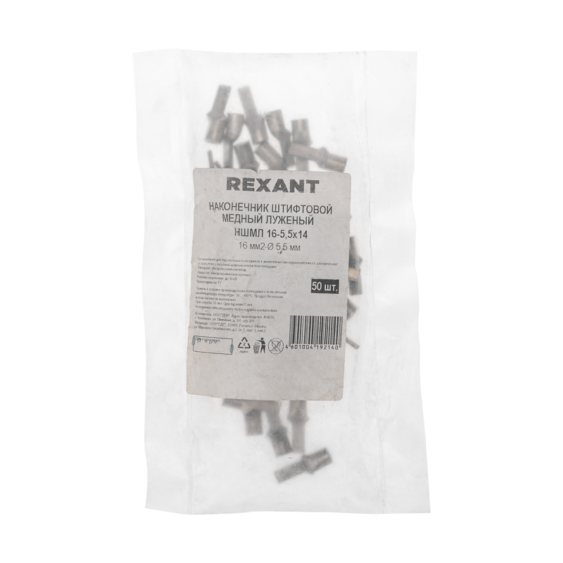 Наконечник штифтовой НШМЛ 16-5,5х14 (16 мм² - Ø 5,5 мм) REXANT используется для подключения проводников к автоматическим выключателям и к электрическим устройствам с зауженной шириной контактной площадки.