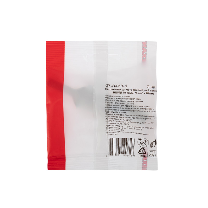 Наконечник штифтовой НШМЛ 70-7х25 (70 мм² - Ø7мм) REXANT предназначен для подключения проводников к автоматическим выключателям и к электрическим устройствам с зауженной шириной контактной площадки.