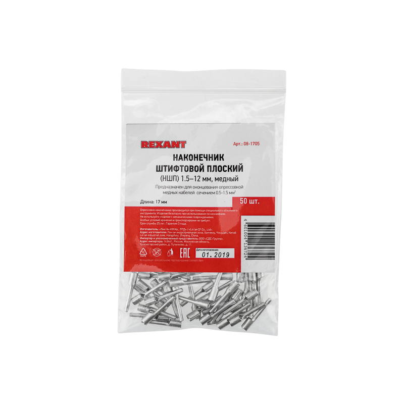 Наконечник штифтовой плоский кабельный (НШП) 1.5–12 REXANT