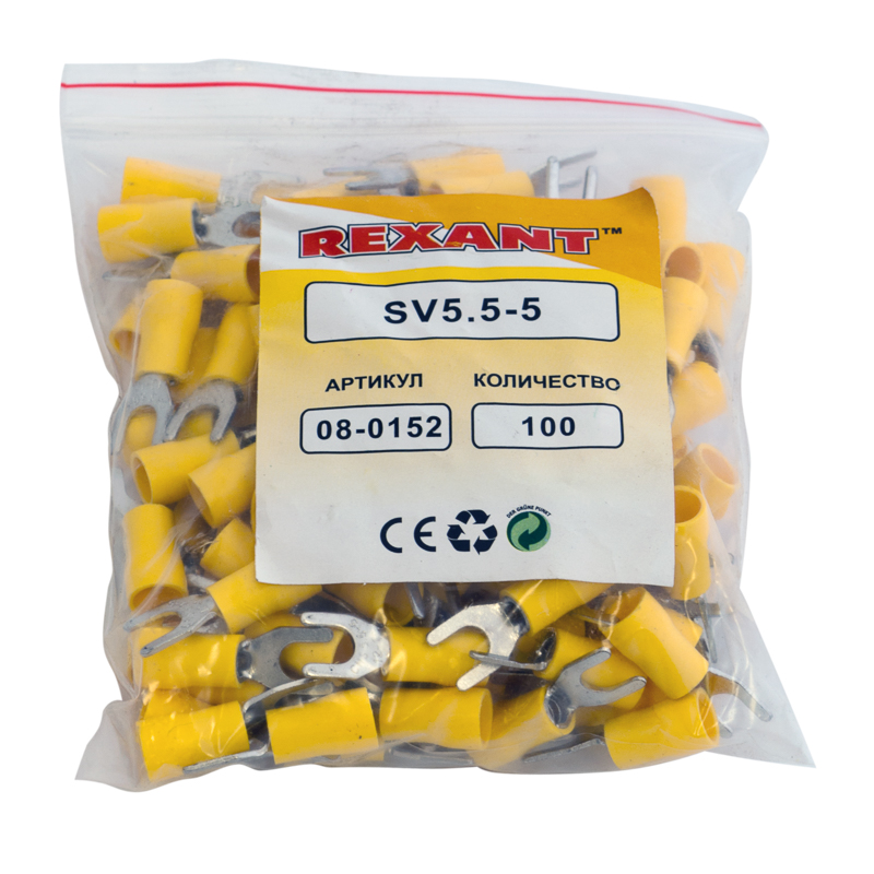 Наконечник вилочный изолированный 5.3 мм 4-6 мм² (НВи 6.0-5/НВи 5,5-5) желтый REXANT