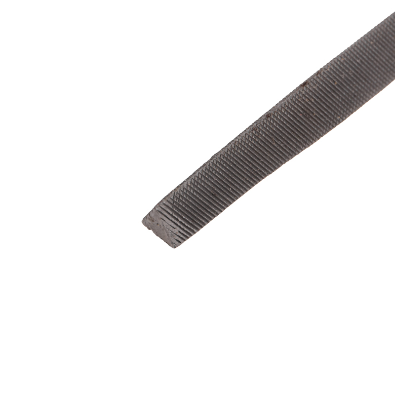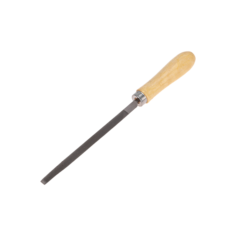 Напильник предназначен для качественной обработки плоских поверхностей и отверстий в твердых материалах. Инструмент имеет двойную перекрестную насечку № 2. Площадь сечения напильника уменьшается от середины к носу. Напильник изготовлен из углеродистой стали. Поставляется в комплекте с деревянной рукояткой, которая покрыта бесцветным лаком, защищающим древесину от рассыхания и набухания.