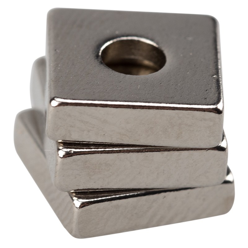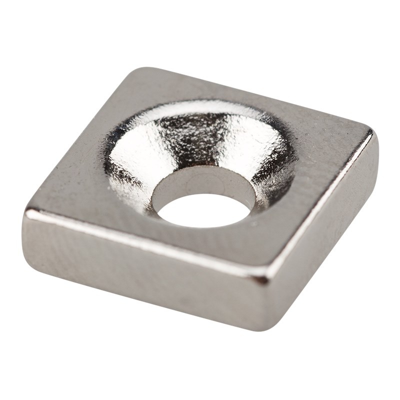 Постоянный редкоземельный неодимовый магнит-прямоугольник с зенковкой предназначен для создания сильного магнитного поля. Используется для фиксации и зажима металлических предметов: крепления жалюзи, баннера или автомобильного кузова, создания застежки на портфелях, кейсах, чемоданах, сумках. Находит множество применений в быту и промышленности.