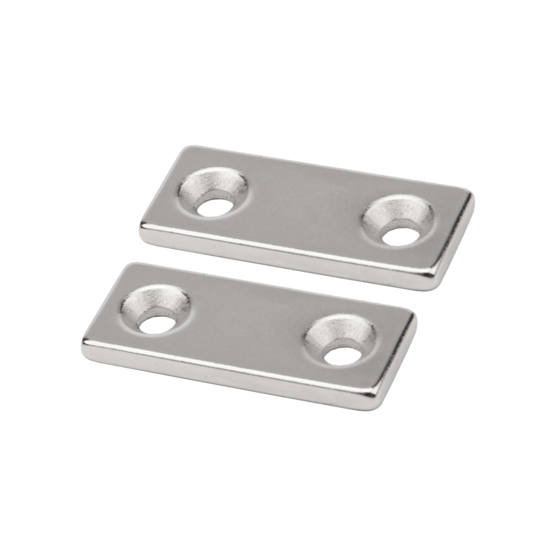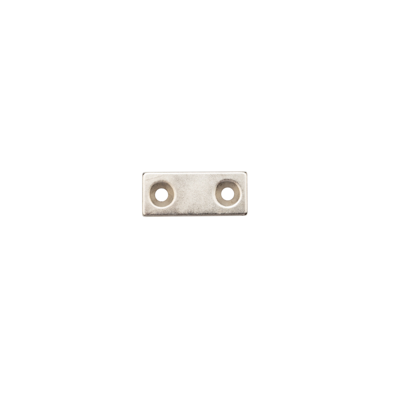 Постоянный редкоземельный неодимовый магнит-прямоугольник с двойной зенковкой предназначен для создания сильного магнитного поля. Используется для фиксации и зажима металлических предметов: крепления жалюзи, баннера или автомобильного кузова, создания застежки на портфелях, кейсах, чемоданах, сумках. Находит множество применений в быту и промышленности.
