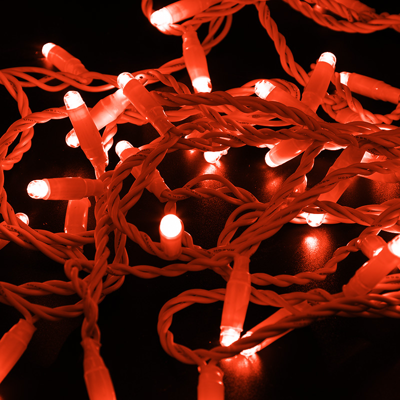 Данная гирлянда имеет белый ПВХ и Красный цвет свечения светодиодов. Ее особенностью является наличие мерцающих светодиодов Белого цвета, которые привлекают внимание и значительно преображают украшенную поверхность (мерцает каждый пятый светодиод). Гирлянда предназначена для использования как внутри помещения, так и снаружи.