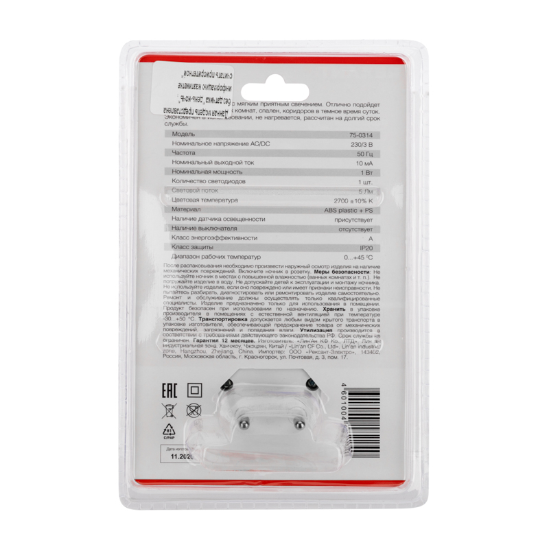 Светодиодный ночник REXANT НОТКАКТУС предназначен для освещения бытовых помещений, коридоров, спален и санузлов в темное время суток.