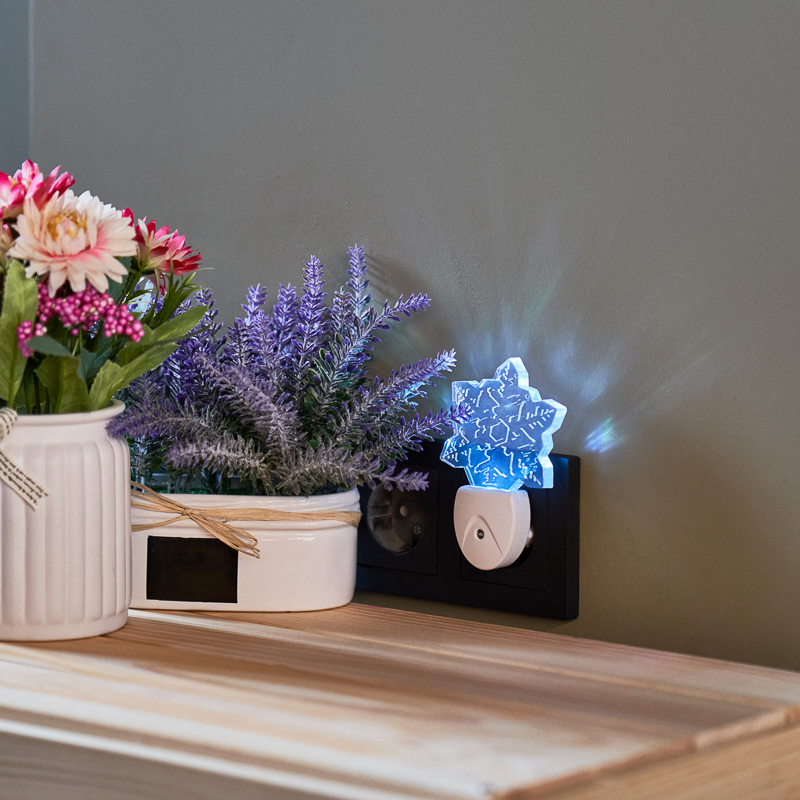 Светодиодный ночник REXANT СНЕЖИНКА ХАМЕЛЕОН предназначен для освещения бытовых помещений, коридоров, спален и санузлов в темное время суток.