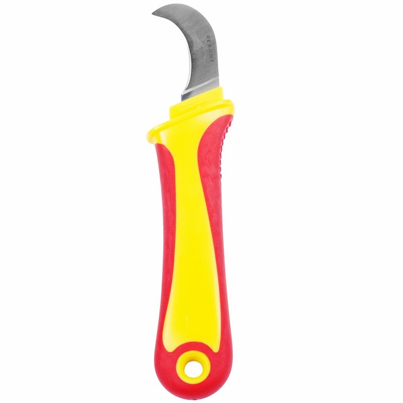 Усиленное лезвие со специальной двухсторонней заточкой для работы с толстыми материалами изготовлено из нержавеющей стали, благодаря чему защищено от коррозии и имеет продолжительный срок эксплуатации. За счет прецизионной заточки лезвия инструмент обеспечивает высокое качество снятия оболочки без риска повредить жильную изоляцию. Изогнутая форма лезвия делает нож удобным для работы в труднодоступных местах. Мощная противоскользящая рукоятка изготовлена из мягкого пластика и гарантирует комфорт и безопасность во время работы. Для удобного хранения и транспортировки ножа предусмотрены пластиковые ножны.