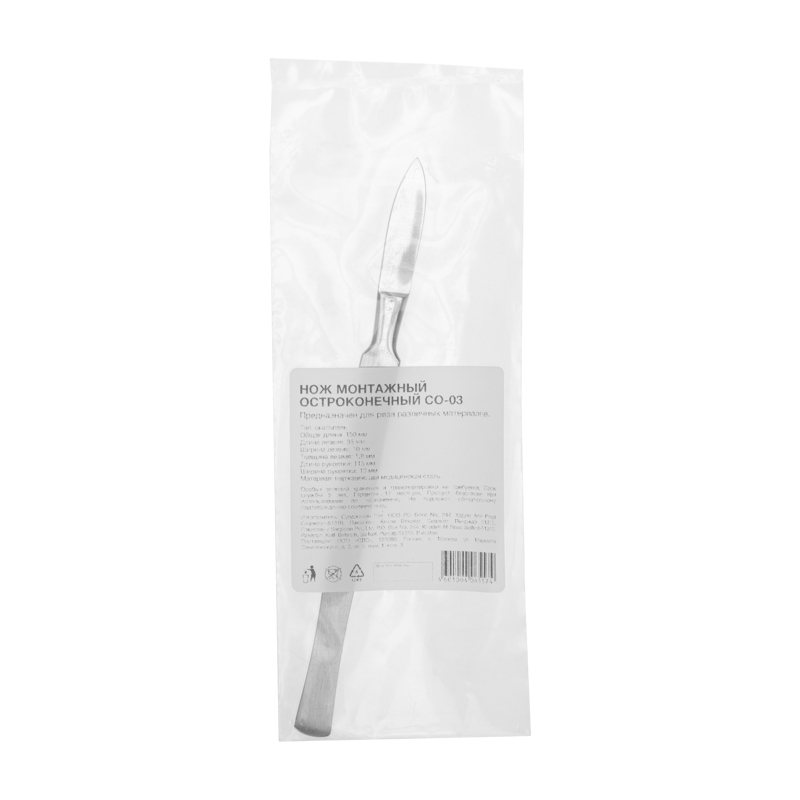 Нож монтажный остроконечный средний СО-03 подходит для резки, зачистки проводов и кабелей; для точечных, паяльных работ и работ с электроникой; для проведения художественных и дизайнерских работ: декорирования резными элементами, декупажа, квиллинга, скрапбукинга, пэчворка и др. Может использоваться для реза различных материалов: бумаги, фольги, древесины, пластика, ткани, кожи.