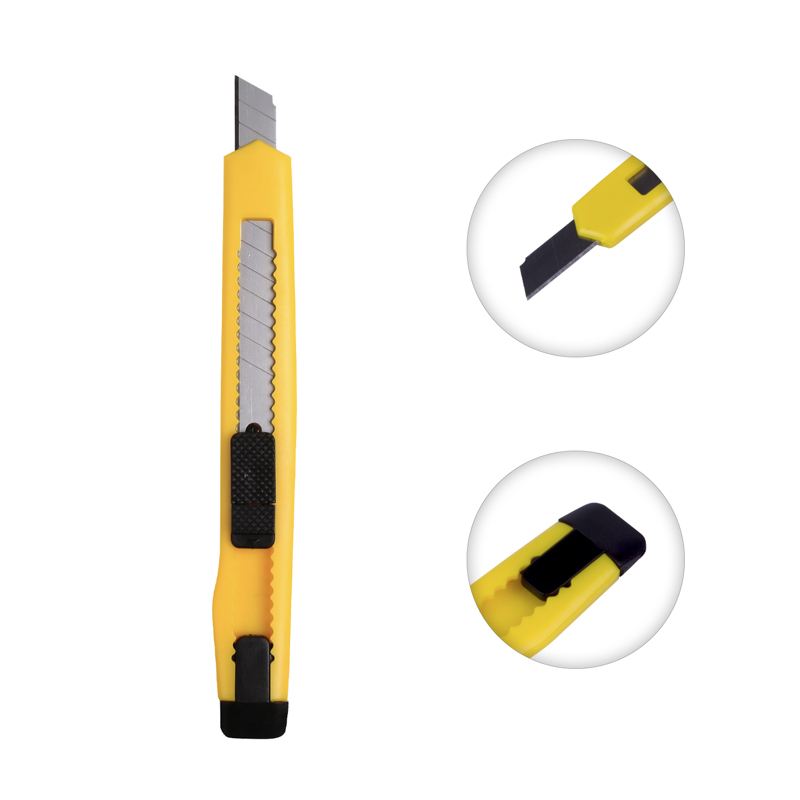 Корпус ножа выполнен из пластика и оснащен клипсой, благодаря которой инструмент можно фиксировать на одежде. Сегментированное лезвие шириной 9 мм изготовлено из высококачественной инструментальной стали. Когда крайний сегмент затупляется, его можно отломить и продолжить использование инструмента.