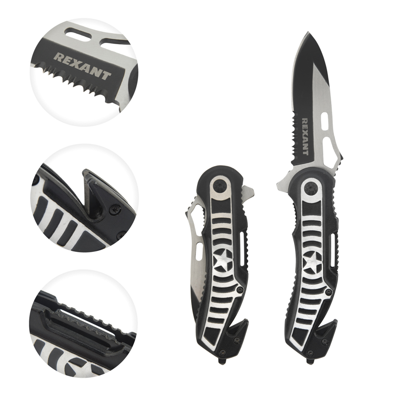 Универсальный складной полуавтоматический карманный нож REXANT «Autosafer» широко применяется в хозяйственных работах и туризме. Лезвие остро заточено, изготовлено из высококачественной стали. Эргономичная алюминиевая рукоятка комфортно располагается в ладони, благодаря чему нож удобен в использовании. Конструкция позволяет легко и быстро открывать инструмент одной рукой. За безопасность эксплуатации ножа отвечает линейный фиксатор, который не допускает самопроизвольного складывания клинка во время работы. Инструмент оснащен клипсой для крепления к поясу. Серрейтор на лезвии необходим для разрезания канатов, веревок и жгутов. В основании предусмотрены стеклобой и стропорез, что делает нож полезным и жизненно необходимым инструментом автомобилиста.