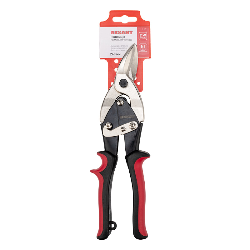 Ножницы REXANT предназначены для правого реза металла толщиной до 1,2 мм и нержавеющей листовой стали толщиной 0,7 мм.