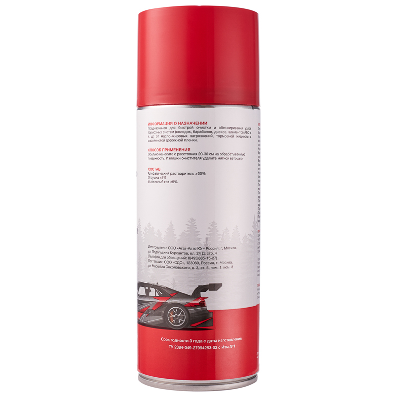Очиститель тормозов – многоцелевой обезжиривающий состав для удаления масла, смазки, тормозной жидкости и других загрязнений с любых видов тормозных систем и их частей, а также деталей сцепления без разборки. Позволяет устранить скрип тормозов.
