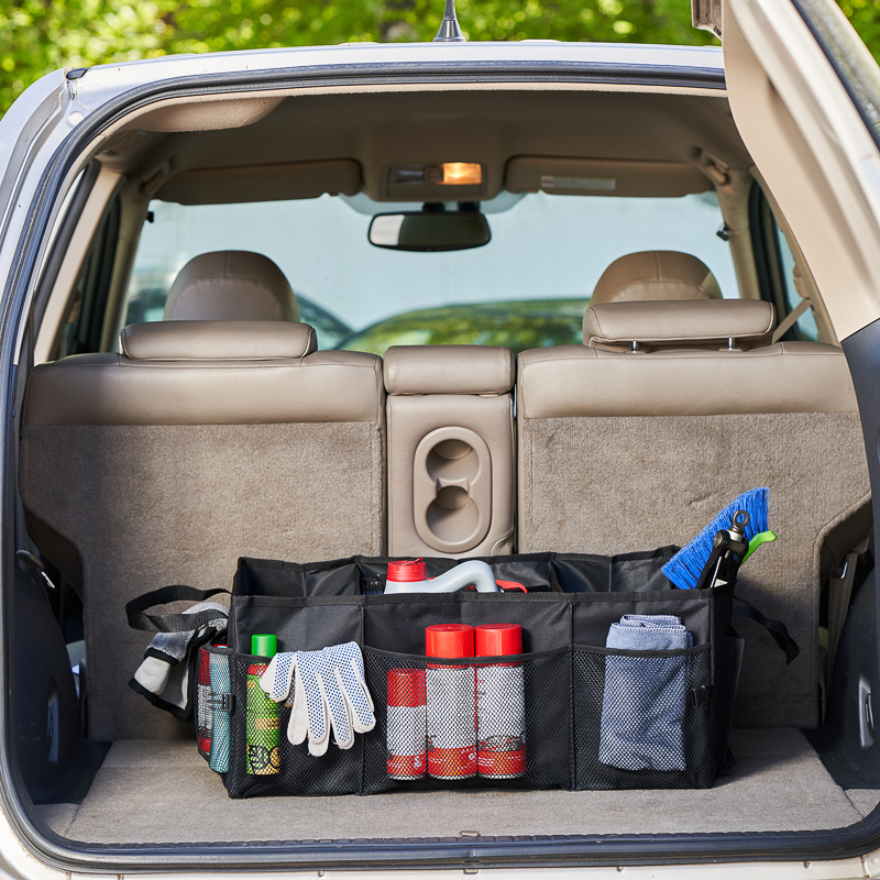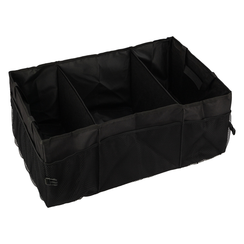 Органайзер оснащен тремя отделениями, которые позволяют хранить различные предметы, инструменты, средства для ухода за автомобилем, автохимию, аптечку, перчатки и многое другое.