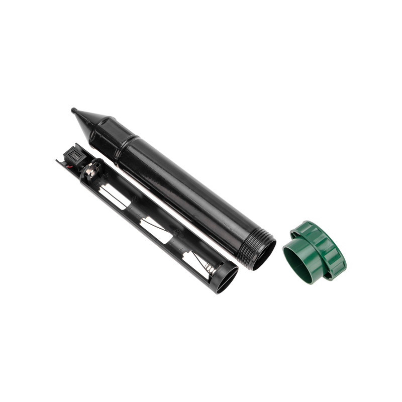Изделие оснащено специальным отсеком для батарей, который легко вытаскивается без необходимости выкапывания всего отпугивателя из земли. Для замены батарей достаточно вынуть отсек, вставить новые батареи, а затем вернуть отсек обратно.