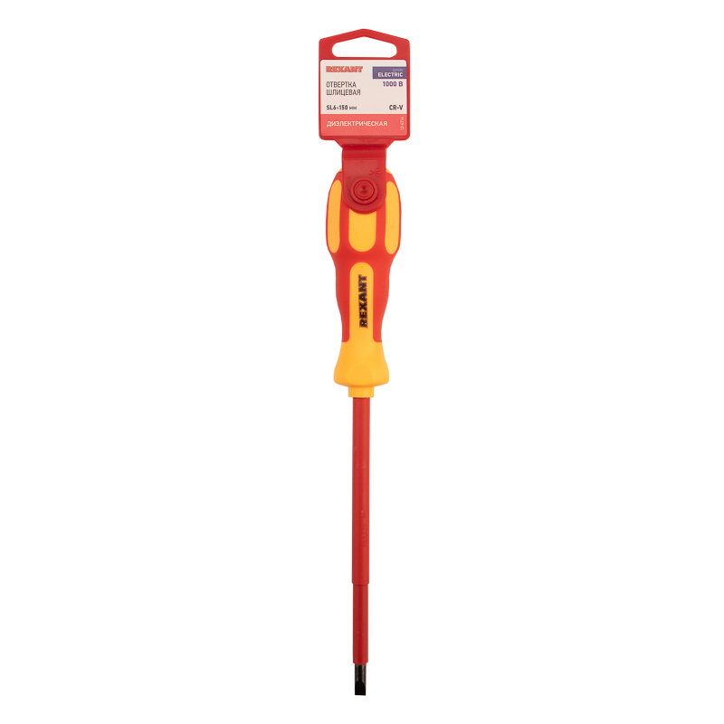 Отвертка шлицевая диэлектрическая SL6х150мм, до 1000В, двухкомпонентная рукоятка REXANT